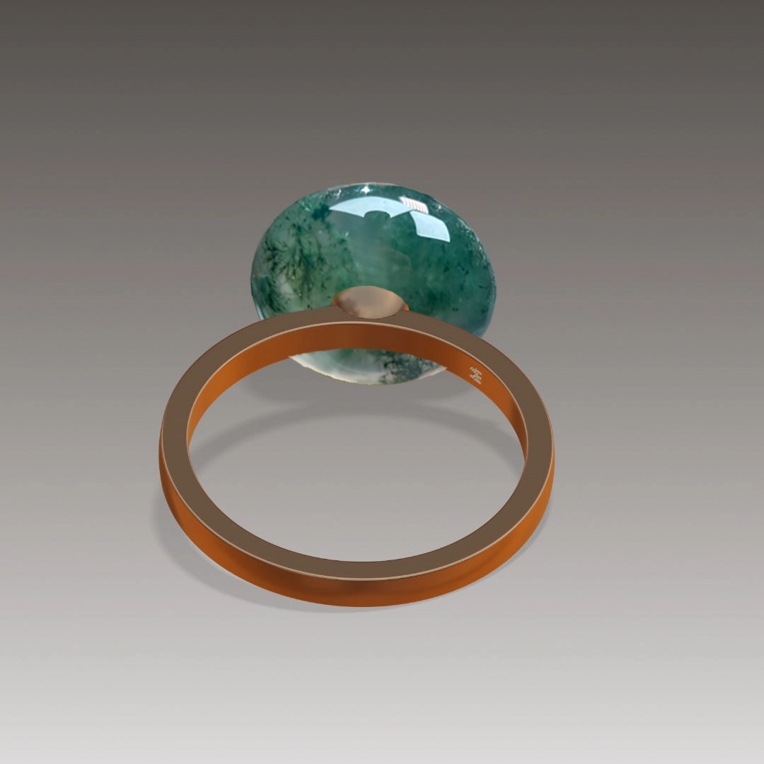 Custom Moss Agate Donut Ring – Unisex Pi Stone Jewelry in 14K/18K Gold or Silver