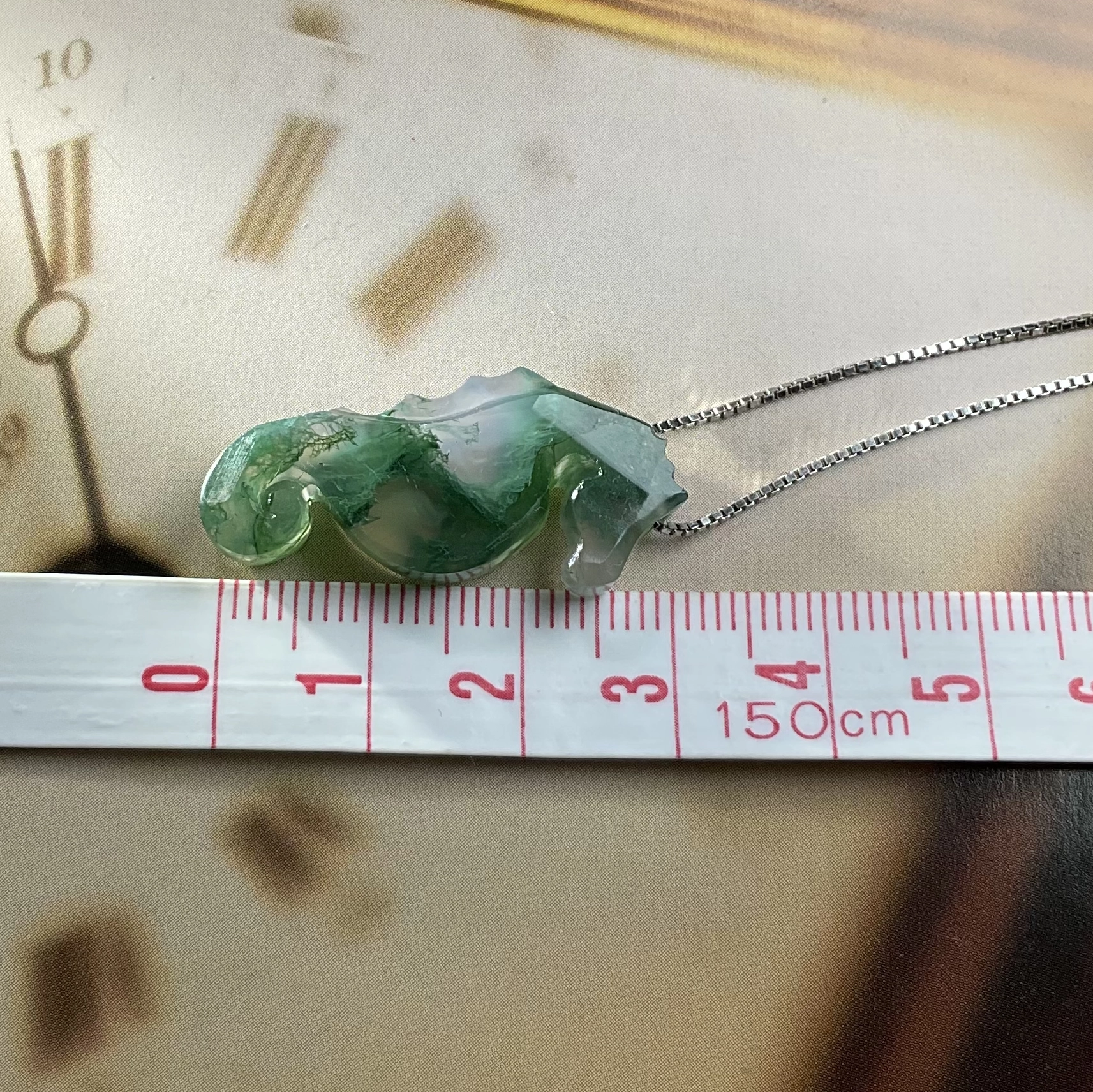 Moss Agate Pendant, Healing Pendant, Seahorse necklace, Unique pendant, Gift for her. Behold the mesmerizing beauty of this seahorse pendant, lovingly crafted from the soothing essence of moss agate. Like a gentle wave caressing the shore, this enchanting piece carries the calming energy of the ocean within its swirling patterns.