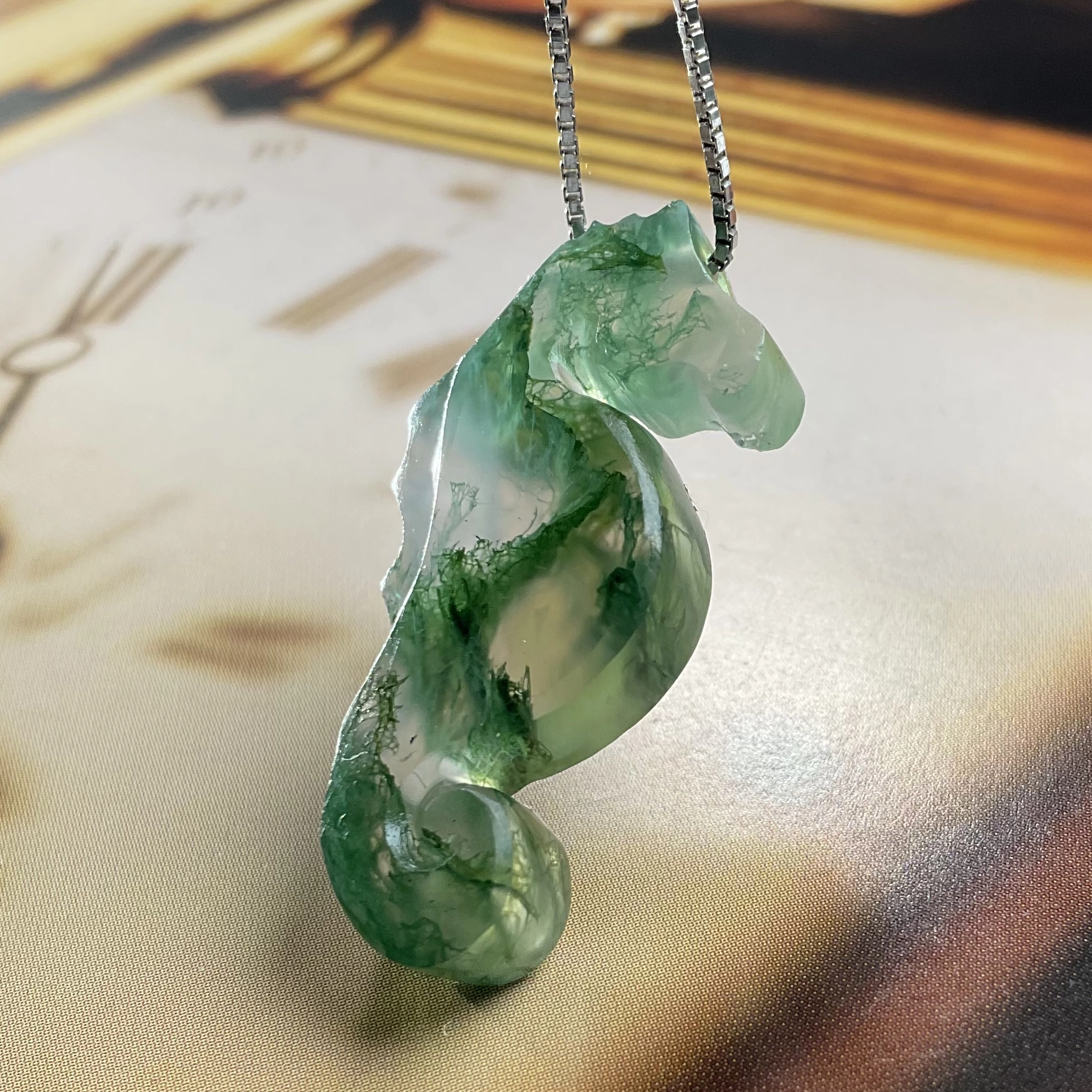 Moss Agate Pendant, Healing Pendant, Seahorse necklace