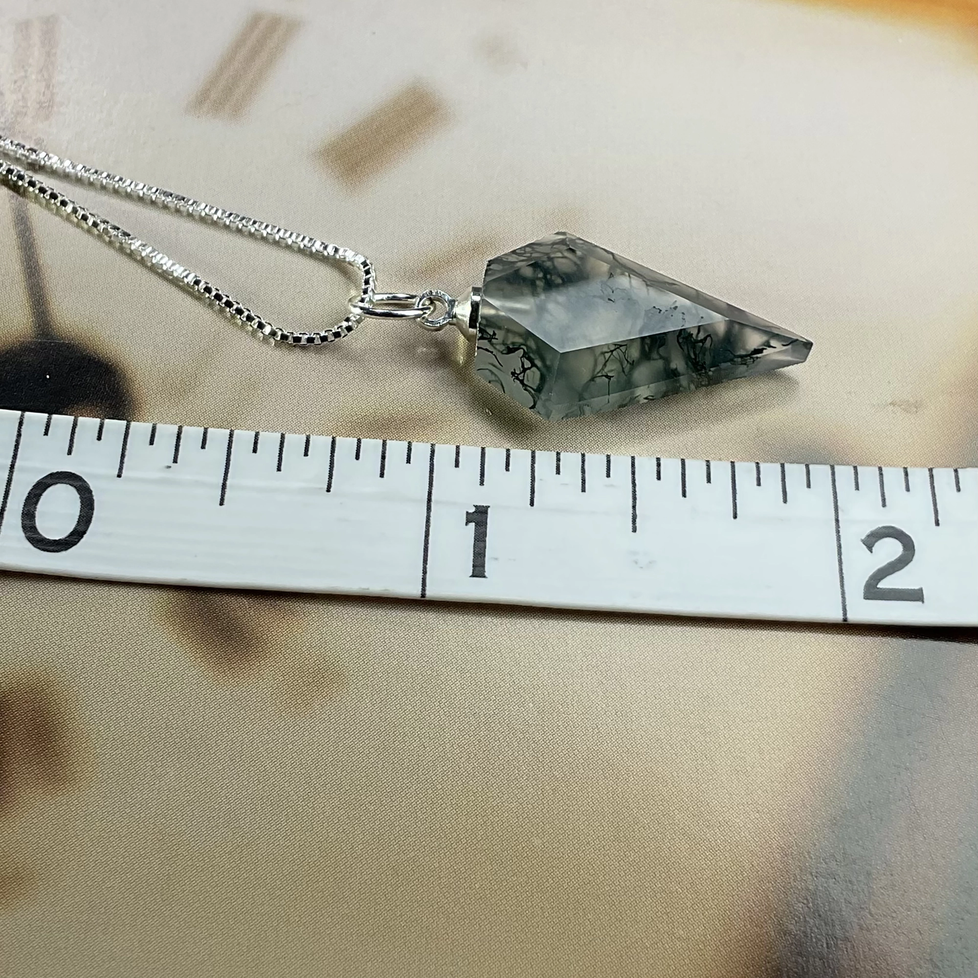 Be the first to review “Natural moss agate necklace, prismatic pendant, hand cut gemstone” Cancel reply