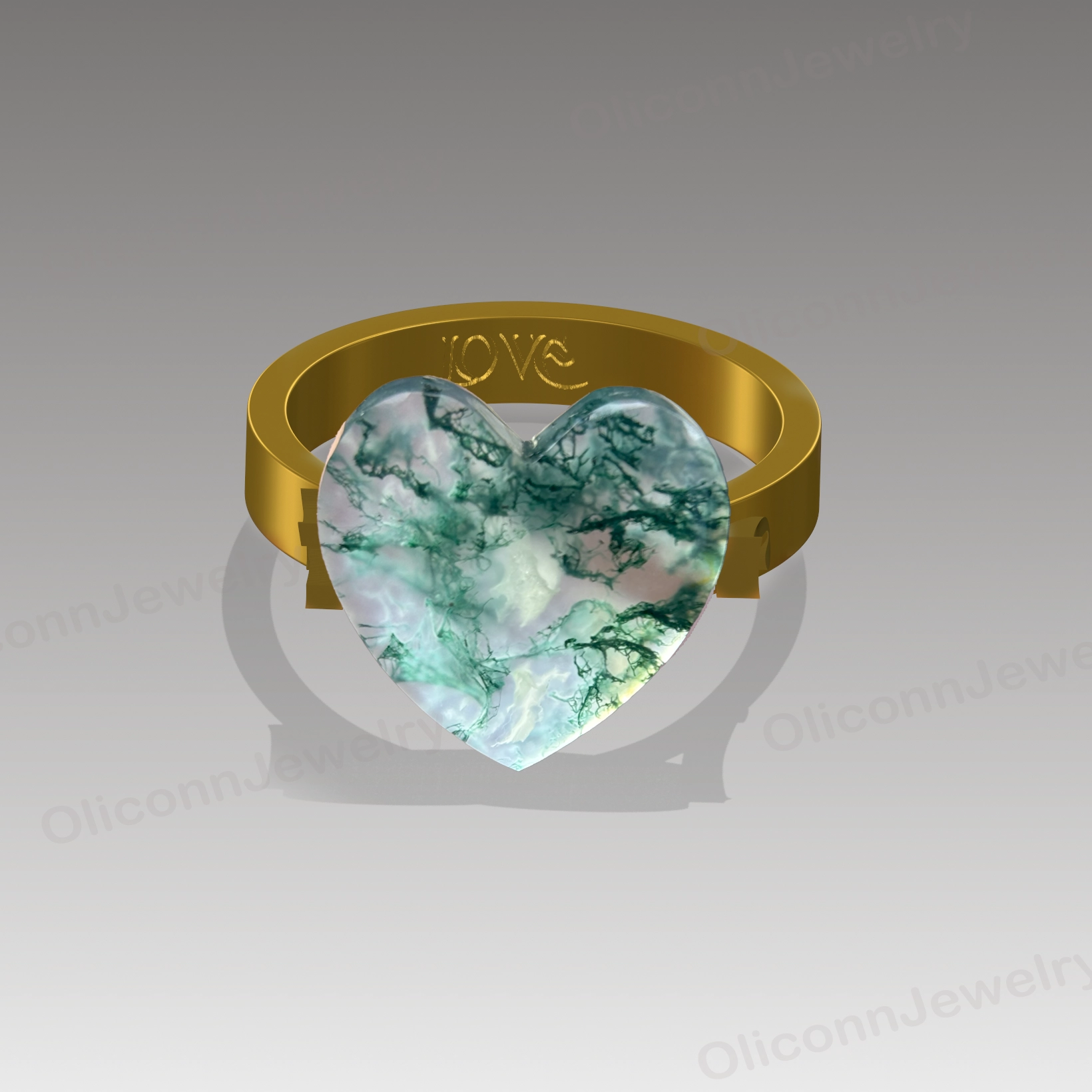 • Stone: Natural Moss Agate – heart cut