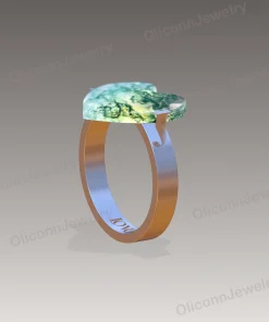 Handcrafted with love, this heart-shaped moss agate ring is a symbol of romance and nature’s beauty. Each gemstone features unique green moss-like inclusions, making it a truly one-of-a-kind piece. Choose from sterling silver, 14K or 18K gold, and personalize it with two engraved initials—one on each side of the gemstone—for a meaningful keepsake or a special couple’s gift.